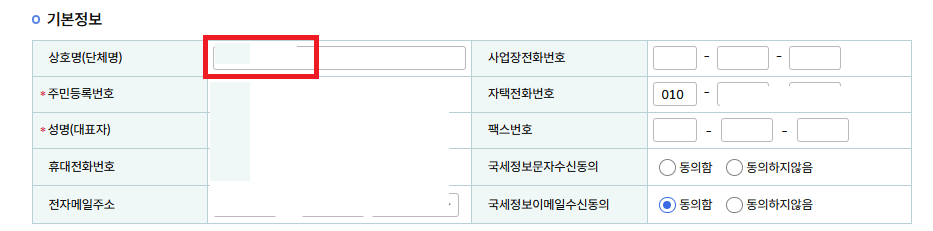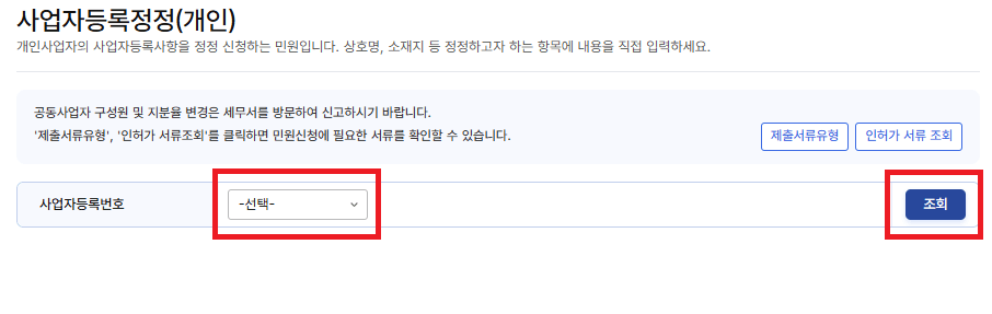 • 저는 상호명과 업종 변경을 선택해서 상호명을 변경합니다.